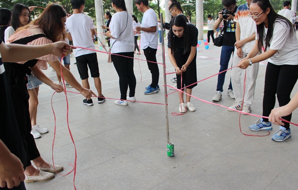10月2日,由校团委主办,校学生社团联合会、经济管理学社、爱心社共同承办的“喜迎十九大,欢度国庆节”迎国庆系列活动之素质拓展训练在体育馆前顺利举办。各社团成员共计200余人参与此次活动。本次活动为接力赛游戏,游戏包含四个部分,分别为“五人六足”“穿越火线”“众星揽月”“跳大绳”。每个社团为一组,各组之间进行角逐,最后评出一二三等奖。