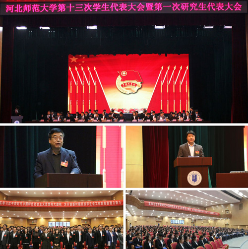 校团委书记马建国老师致开幕词。河北省学生联合会驻会执行主席孙玉璇代表河北省学生联合会在大会上致辞。校学生会主席陈金鹏代表河北师范大学学生会作了题为《勇于推进改革创新服务学生成长成才 全面展现新时期我校学生会工作新风貌》的工作报告。