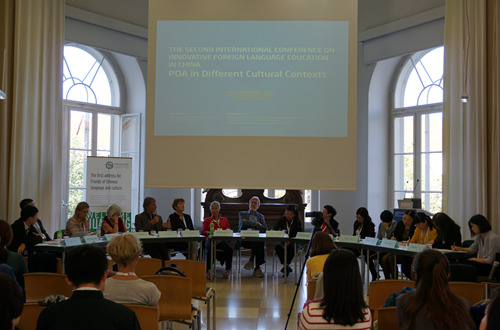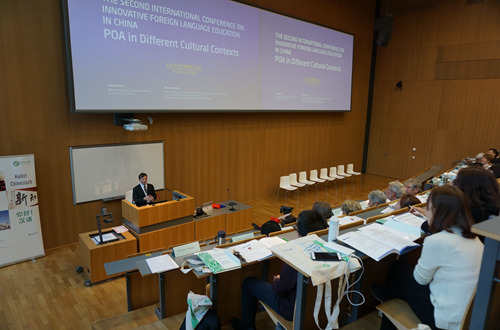 尚七网10月20日讯 10月13日至14日,第二届“创新外语教育在中国”国际研讨会在维也纳大学举办。此次研讨会由我校和维也纳大学联合主办,我校中国外语与教育研究中心、维也纳大学孔子学院和外语教学与研究出版社承办。研讨会的主题是:不同文化背景下的“产出导向法”。50余位来自国内外的专家学者、海外孔子学院汉语教师以及维也纳当地本土汉语教师参加了会议,就“产出导向法”在英语和汉语教学中的应用展开深入研讨。