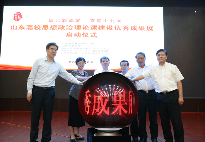启动仪式上,播放了山东高校思政课建设优秀成果展专题片。与会有关领导共同启动山东高校思政课建设优秀成果集中展示活动。仪式结束后,与会人员到图书馆一层西侧展厅参观了山东高校思政课建设优秀成果现场展示。