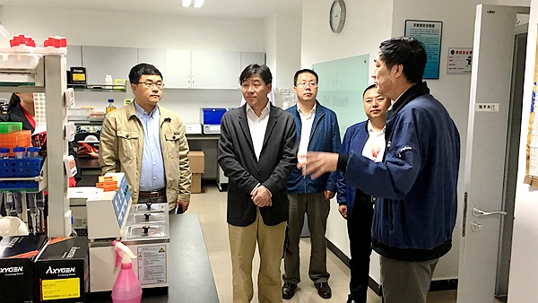 张俊宗一行先后考察了大北农生物技术中心、饲用微生物国家重点实验室、农信互联网科技公司、大北农兰州新区饲料加工厂,详细了解了其生物技术中心玉米、水稻、大豆等作物遗传转化的产品研发、饲用微生物国家重点实验室饲用微生物菌种创新、功能基因研究等9大关键性技术平台的集成应用及科研成果,以及北京农信互联科技有限公司猪联网与资信服务和饲料厂的生产、销售情况。