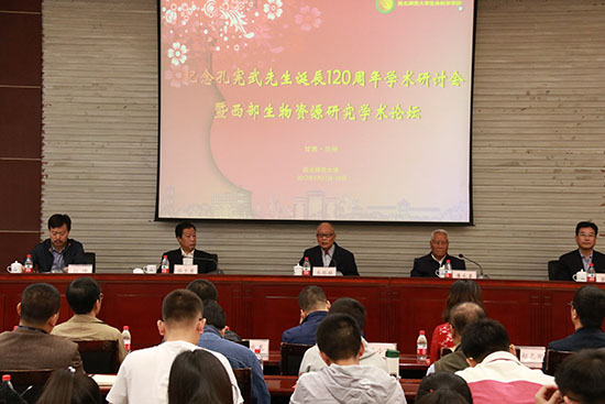 尚七网10月11日讯 9月27日至29日,由西北师范大学生命科学学院主办的纪念孔宪武先生诞辰120周年学术研讨会暨西部生物资源研究学术论坛在专家楼会议厅召开。来自中国科学院植物研究所、成都生物研究所、西北生态环境资源研究院,香港大学生命科学学院、南方科技大学生物系、北京林业大学园林学院、兰州大学生命科学学院、甘肃农业大学草业学院、甘肃中医药大学等单位的专家学者和西北师大副校长张生勇,科学技术处、科研合作服务处负责人,孔宪武先生的学生朱格麟教授、廉永善教授,校友代表,生命科学学院师生代表参加会议。论坛开幕式由生命科学学院院长孙坤教授主持。