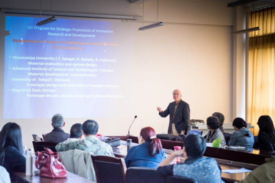 报告中,Toyohiko Yatagai教授详细介绍了SPIE的相关资讯并鼓励我们的师生积极加入,报告回顾了光学数据存储技术的发展历程与进展,并介绍了所领导团队将偏振全息用于光学数据存储的突破性成就及进展。讲座后,Toyohiko Yatagai教授与师生进行了学术交流和讨论,对提出的问题进行了详细的解答,并邀请教师和研究生到宇都宫大学交流、深造。