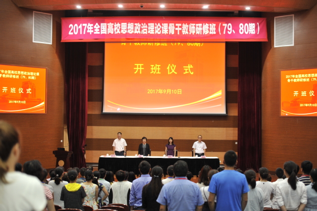 尚七网9月15日讯 为贯彻落实全国高校思想政治工作会议精神,深入推进高校思想政治理论课建设,根据《中共中央宣传部教育部关于组织高校思想政治理论课骨干教师研修的意见》(教社科〔2007〕3号)和《中共中央办公厅国务院办公厅转发〈教育部关于深入推进高等学校哲学社会科学繁荣发展的意见〉的通知》(中办发〔2011〕31号)精神,9月10日下午,为期20天的中宣部、教育部2017年高校思想政治理论课骨干教师研修班(79期、80期)开班仪式在我校图文中心104报告厅举行。开班式上,上海市委宣传部副部长、上海社联党组书记燕爽为全体学员做了题为“加强和构建主流意识形态的若干思考”的首场报告。校党委副书记、副校长汪歙萍,上海市教委德育处处长耿绍宁,上海市学生德育发展中心副主任宗爱东出席开班仪式。来自全国各省、市、自治区以及新疆生产建设兵团的近200名高校思想政治理论课教师参加会议。开班仪式由我校马克思主义学院院长董玉来主持。